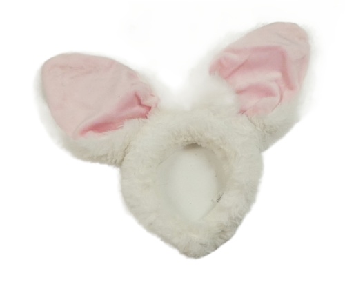 Bílá chlupatá čelenka s oušky - králík