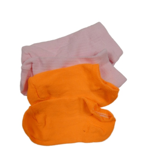 2x kotníkové ponožky - růžové žebrované + neonově oranžové