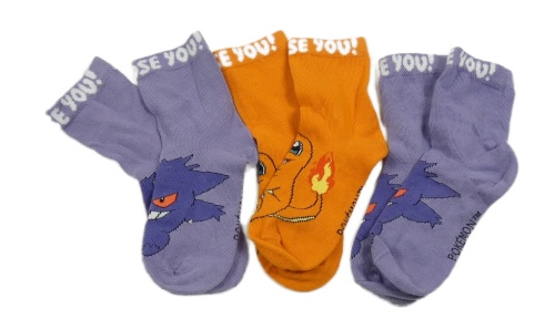 3x - Ponožky s pokémony - 2x - Fialové, 1x - oranžové