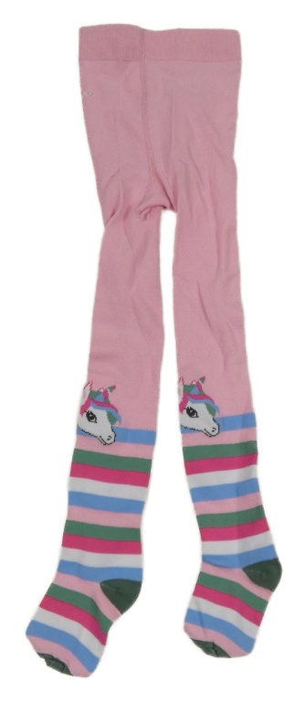 Růžovo-barevné pruhované punčocháče s jednorožci