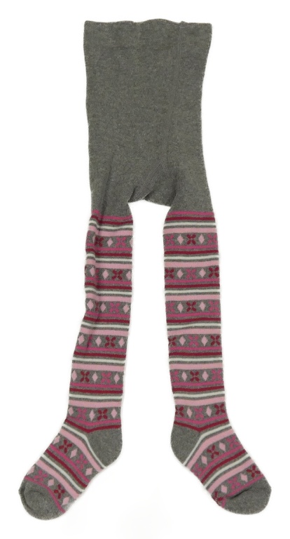 Šedo-růžovo-bílé pruhované thermo punčocháče se vzorem