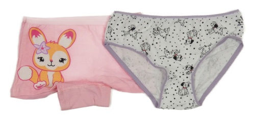 2x kalhotky - bílé puntíkaté s dalmatiny + růžové s králíkem