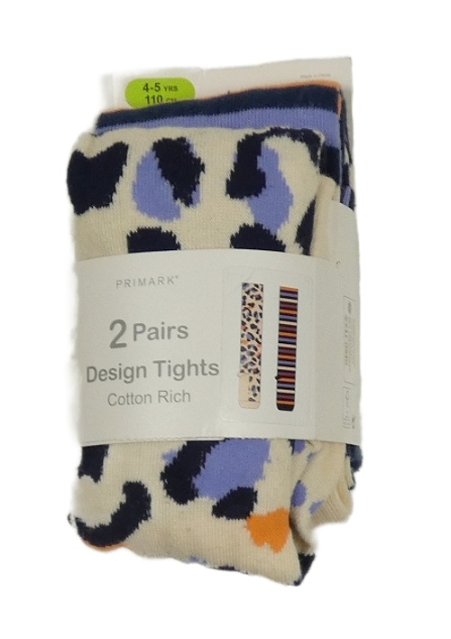 • Nové - 2x punčocháče - krémové vzorované + tmavomodro-barevné pruhované Primark