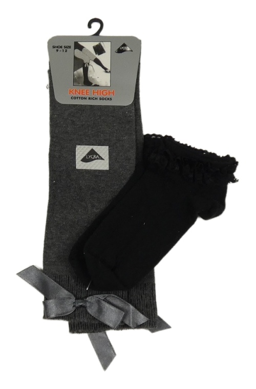 2set - černé ponožky + tmavošedé podkolenky - nové vel.27-30