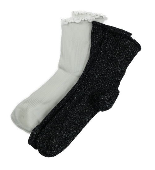 2x - Ponožky - Bílé žebrované, černo/stříbrné melírované