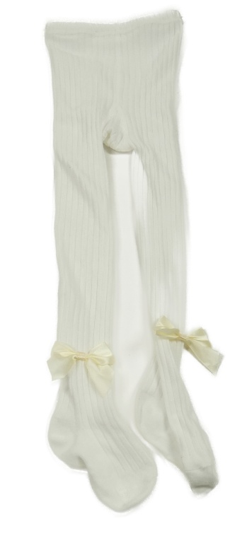 Bílé žebrované punčocháče s mašličkami