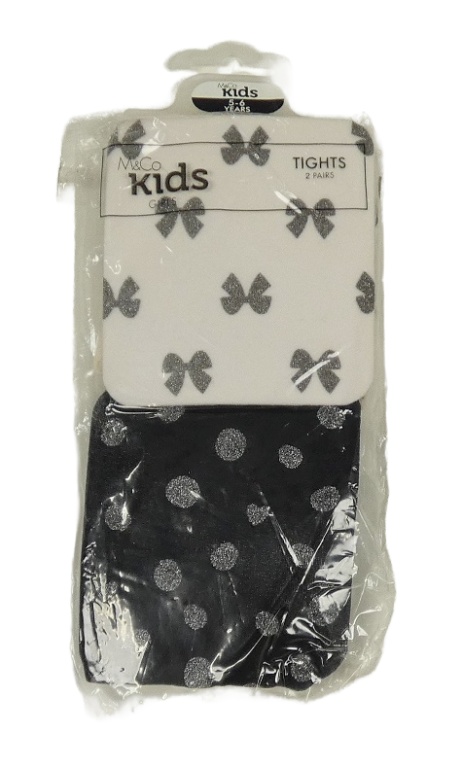 Nové - 2x - Silonky - Černé puntíkaté, smetanové s mašličkami M&Co