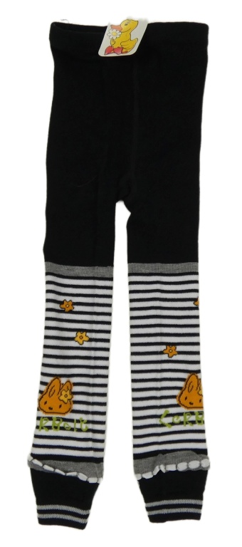 Nové - Černo-bílé punčocháče bez šlapiček s pruhy a králíkem