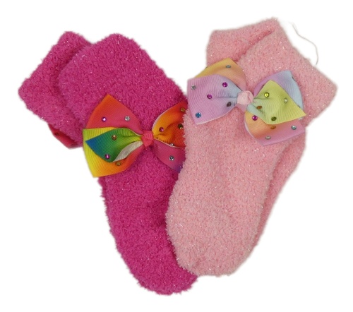 Nové - 2x růžové chlupaté ponožky s mašlí a kamínky