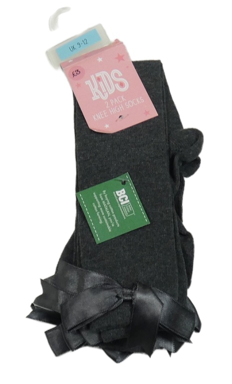 Nové - 2x tmavošedé podkolenky s mašličkami