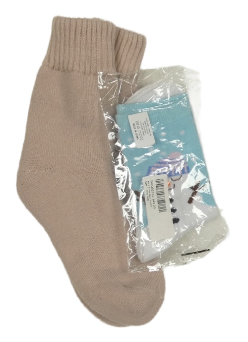 Nové - 2x - Ponožky - Pudrové teplé, světlemodro/bílé se sněhuláčkem