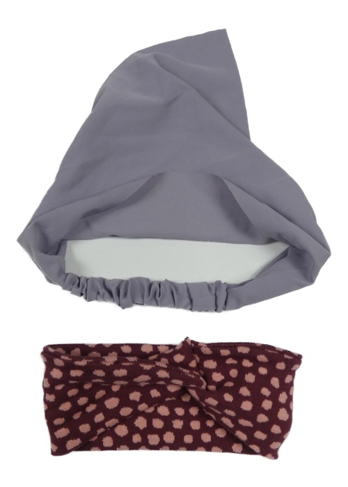 2set - Levandulový šátek + vínová puntíkatá čelenka