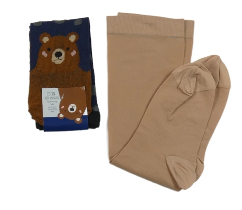 2set- béžové silonové ponožky+ tmavomodré ponožky s medvědem