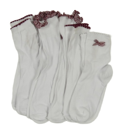 5x bílé ponožky s červenými volánky