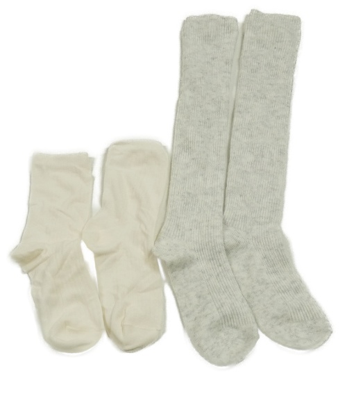 2x ponožky - smetanové žebrované + světlešedé melírované podkolenky