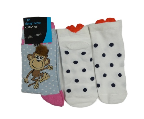 Nové - 2x ponožky - modro-růžové s opicí + bílé puntíkaté kotníkové