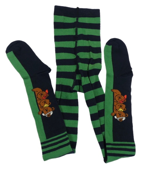 Černo-tmavozelené pruhované punčocháče s medvídky