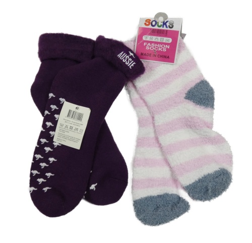 Nové - 2x ponožky - růžovo-bílé pruhované chlupaté + vínové zateplené s klokany