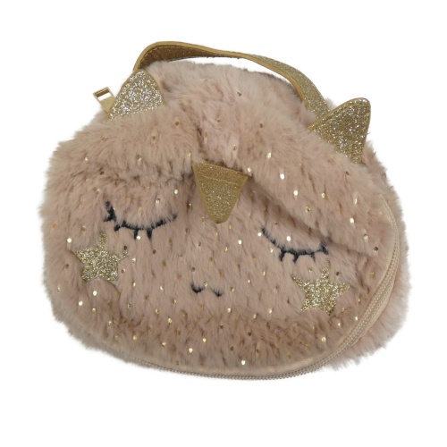 Starorůžovo-zlatá kožešinová kosmetická taštička - jednorožec Monsoon