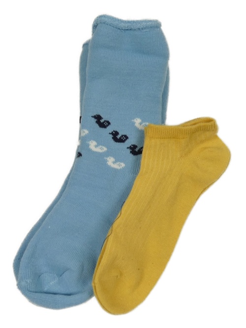 Nové - 2x ponožky - modré zateplené s kachničkami + žluté kotníkové
