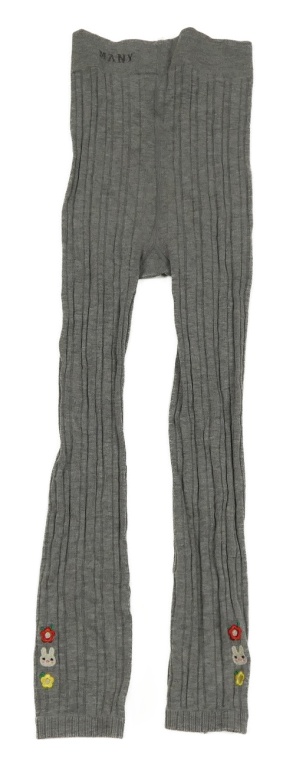 Šedé melírované žebrované punčochové legíny s květy a zajíčky MANY