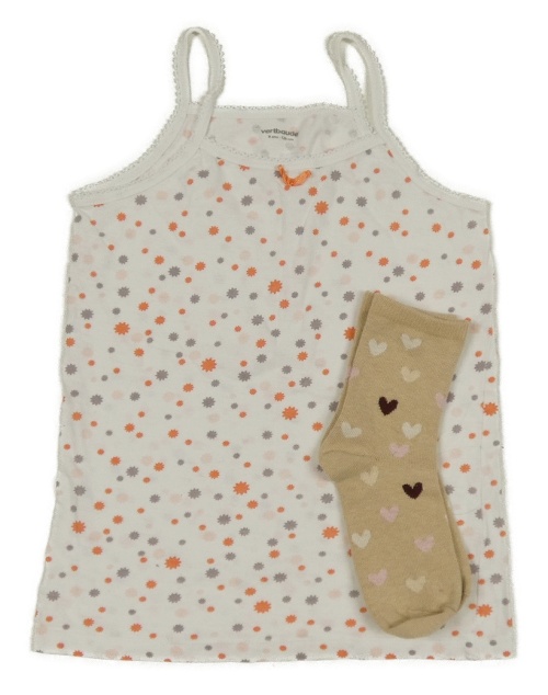 2 set - bílá vzorovaná košilka + béžové ponožky se srdíčky