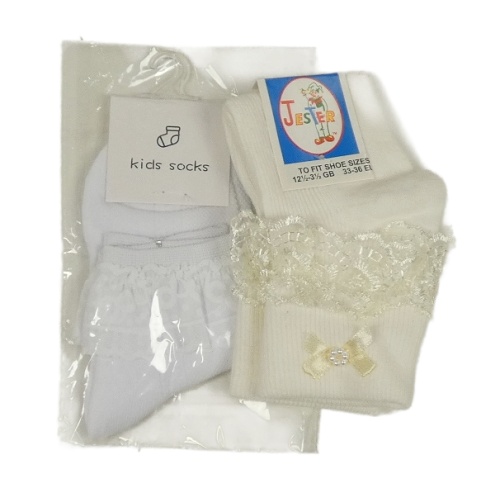 Nové - 2x - Ponožky s krajkovým volánkem - Bílé, smetanové