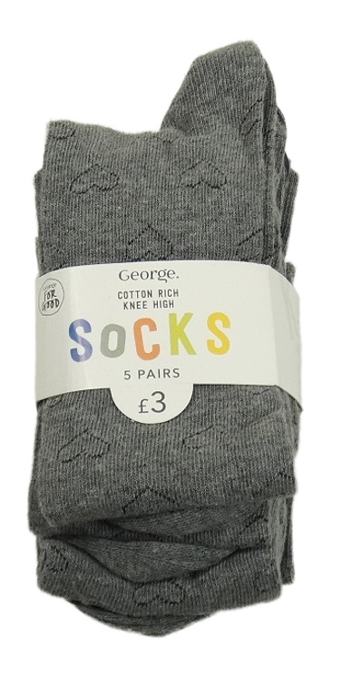Nové - 5x šedé podkolenky s perforovanými srdíčky George