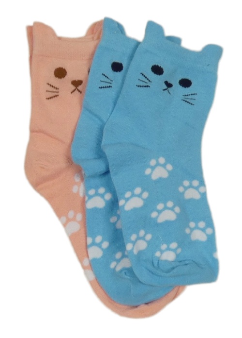 Nové - 2x ponožky s kočkou a tlapkami - modré + lososové vel. 31-36