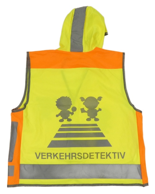 Neonově žluto/oranžová reflexní vesta s dětmi a kapucí