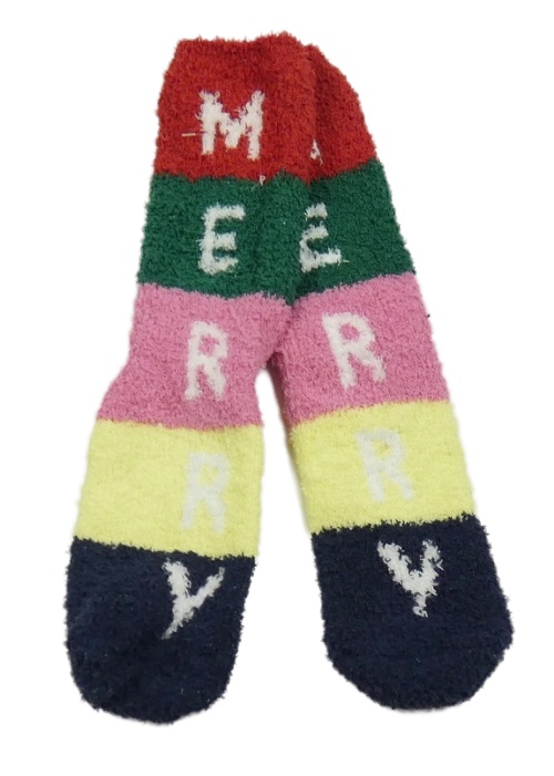 Nové - barevné pruhované chlupaté teplé ponožky s nápisem