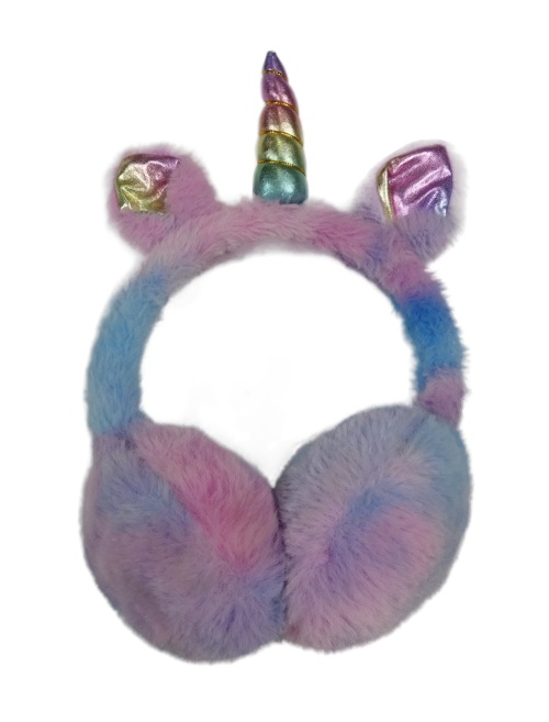 Růžovo-modré chlupaté klapky na uši - jednorožec