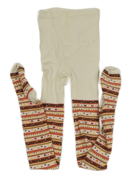 Krémovo-hnědo-červené vzorované punčocháče se srdíčky