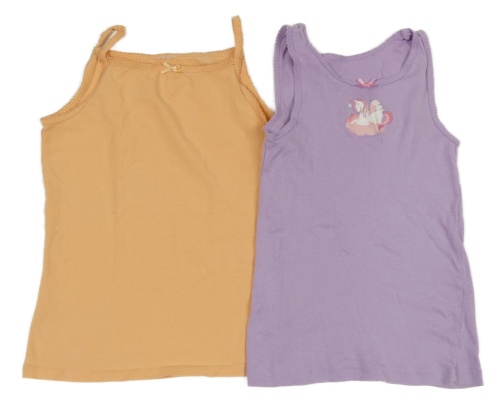 2x košilka - broskvová + lila s jednorožcem