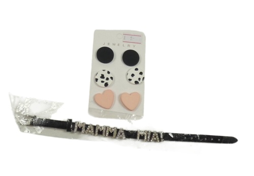Nové - 4 set - černý koženkový náramek + 3x náušnice