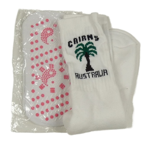 2x bílé ponožky - s protiskluzem - nové + s palmou