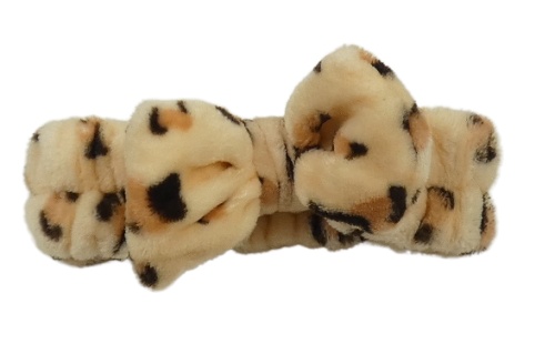• Meruňkovo-medovo-tmavohnědá vzorovaná plyšová kosmetická čelenka s mašlí