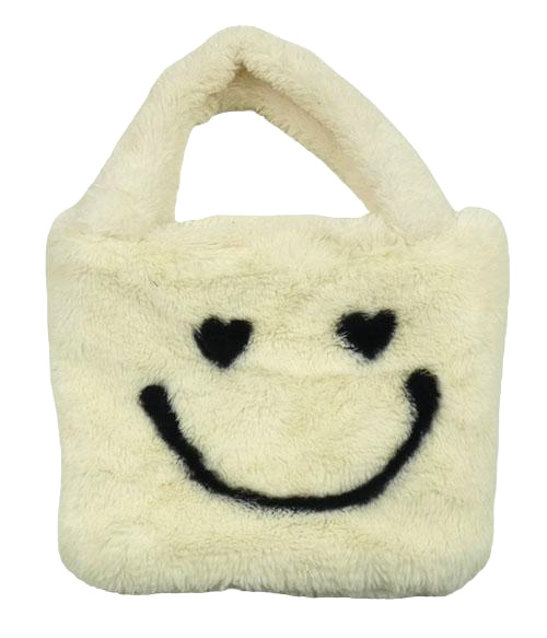 Béžová kožešinová kabelka se smajlíkem