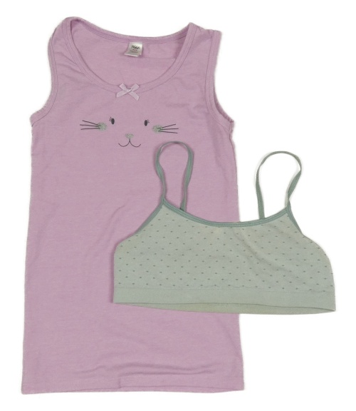 2Set - Lila melírovaná košilka s čumáčkem a mašličkou YIGGA + mentolová melírovaná puntíkatá lambáda HEMA