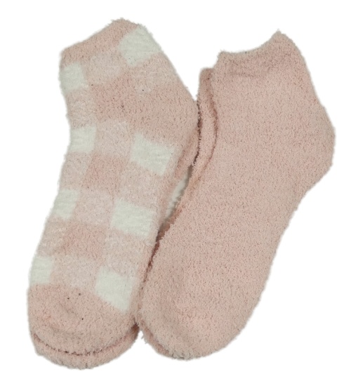 2x chlupaté ponožky - růžové + růžovo-bílé kostkované