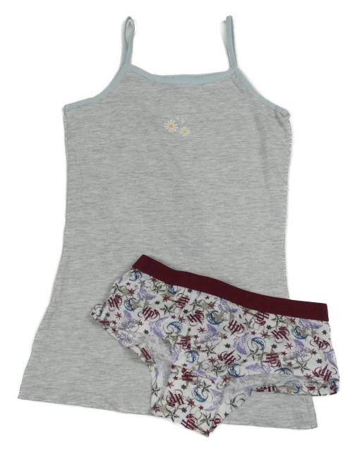 2set - šedá košilka s květinami + bílé vzorované kalhotky s Harry Potterem