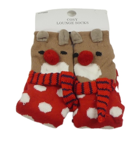 Nové - červeno-hnědé pletené ponožky se sobem a puntíky St. Bernard vel. 37-41