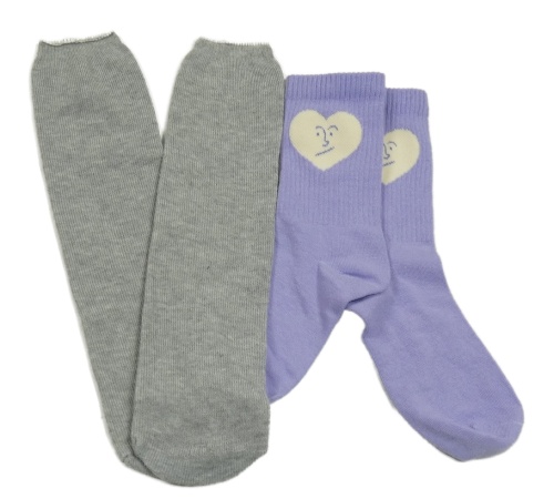 2x ponožky - levandulové se srdcem + šedé melírované