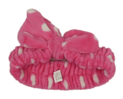 Růžová puntíkatá plyšová kosmetická čelenka s mašlí