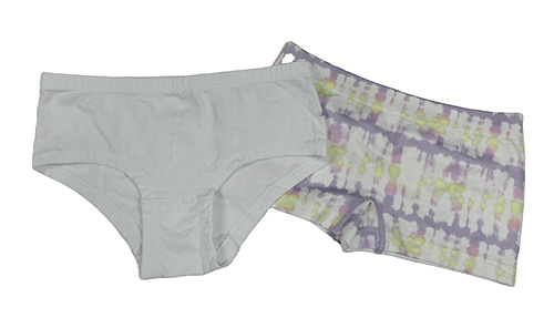 2x kalhotky - bílo-lila-žluté batikované + bílé