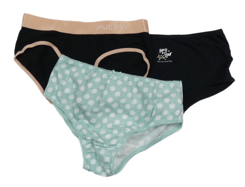 3x kalhotky - 2x černé + zelené puntíkaté