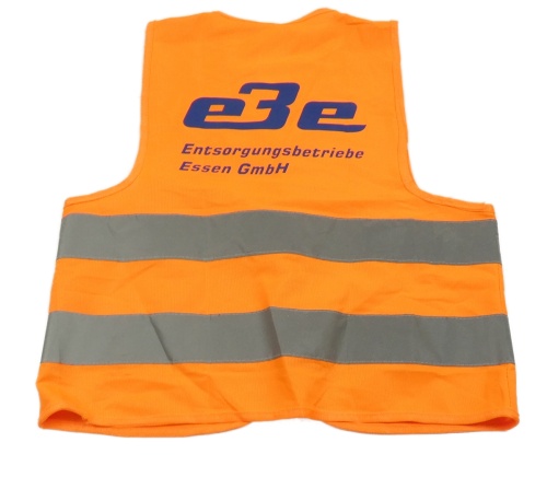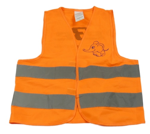 • Neonově oranžová reflexní vesta s pruhy a nápisem