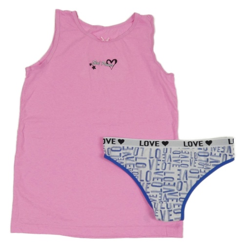 2Set - Růžová košilka s nápisem a srdíčkem PRIMARK + bílo/cobaltově modré kalhotky s nápisy SHEIN