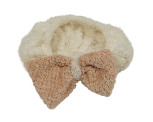 Smetanovo-růžová chlupatá kosmetická čelenka s mašlí