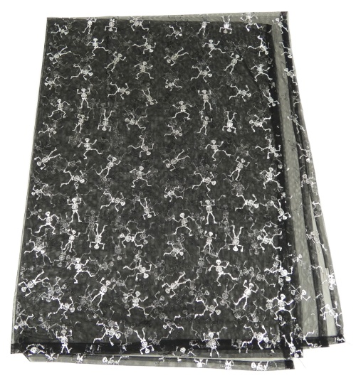Černý tylový ubrus s kostlivcemi